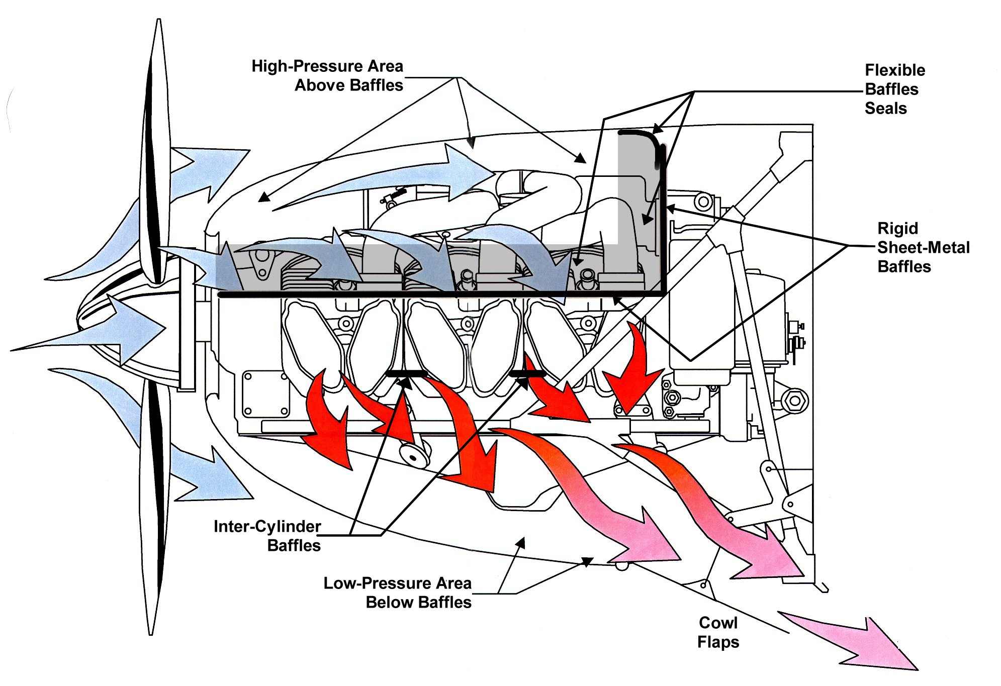Keeping your Conti cool can be a problem when climbing out in very hot weather or at high altitudes. If you notice your CHT’s are getting warmer the best way to bring them down is by trimming nose-down to trade reduced rate-of-climb for increased airspeed. Cowl flaps aren’t terribly effective at low airspeeds but must be set as required. Not all cowl flaps have only an open and closed setting, so use the variable adjustment to control temperatures. Enriching the mixture can help bring down CHT’s but if settings are too rich, this is at the expense of contaminating the engine with unburned fuel..