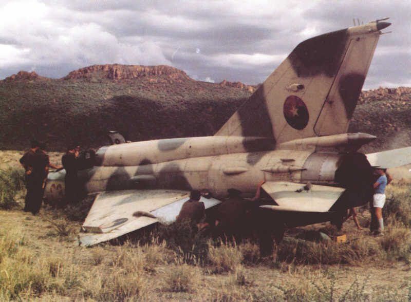 The two F1CZ pilots pitched to 30,000ft and found they were approaching the MiGs head-on at a closing velocity approaching twice the speed of sound. They jettisoned their drop tanks, selected afterburner and at the cross, started a hard right-hand turn in pursuit. The MiG-21s had fired their missiles just before the cross but without success. Closing in on the MiGs, Rankin fired a missile but the range was excessive and the missile went ballistic. He fired the second missile at the lead MiG from 1,500 metres and it exploded close to the MiG, damaging it. Rankin closed on the wingman and fired the 30mm cannon which struck the MiG, causing it to explode. Subsequent reports received indicated that lead MiG’s aircraft was unable to lower its undercarriage which required the pilot to conduct a belly landing, causing substantial damage. (SAAF FAPA Dogfights, Winston Brent, 9 Jan 2006)